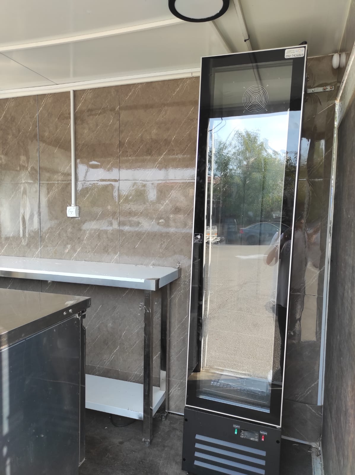 גודל 1.5 על 2.5, כולל מקרר שתייה, מקפיא, סלטיה, משטחי עבודה מנרוסטה, כיור וברז, פלנצ'ה וצ'יפסר.